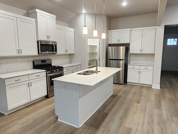 Brand new home in great SW Bentonville location. North facing House 4 bedroom 3 bathrooms with garage on the left, boasting an open floorplan with contemporary flair, tall ceilings in the expansive living room featuring LVP flooring and a gas fireplace and stained beam mantle. Chef's kitchen adorned with Frigidaire stainless steel appliances, a gas range, a pantry, quartz countertops, a spacious kitchen island, and a beautiful backsplash. Indulge in the luxurious master bedroom with stunning stained custom beams and ample natural light, while the spa-like master bathroom offers a walk-in shower, double sinks, and a generous walk-in closet No smoking, one year lease required