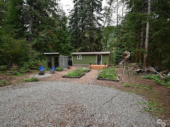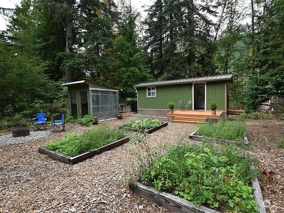 Seeking a place for this year's ski season and home base for year-round recreation? This is your place. Come find out why tiny home living pays off big! This budget friendly tiny home offers an open deck, kitchen with all the essentials ~ stove, vintage washboard sink, on demand + fridge. You will love the very quiet, sunny & spacious lot with enchanting gardens and defined areas. Located at the END of a Mtn community for optimal privacy! Lovely green house, storage container, fire pit, wood storage and RV hookup. Separate wash house with eco-friendly toilet and sink. Sustainable water catchment w/tank, filter system and 200amp power. Corners are flagged. Enjoy the freedom of simpler living near NW's premier recreation. Plenty of parking.