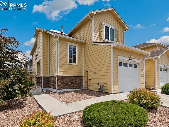 Discover this stunning and meticulously maintained 2-story end-unit townhome featuring an attached garage, offering the perfect blend of comfort, convenience, and privacy. Boasting 3 spacious bedrooms and 2.5 bathrooms, this residence is in truly pristine condition, ready for its new owners to move right in and enjoy. Step inside to find a bright and airy open-concept living space, thoughtfully designed for modern living. The main level features a welcoming living room that flows seamlessly into the dining area and kitchen, perfect for entertaining or quiet evenings at home. The well-appointed kitchen offers ample cabinetry, generous counter space, and modern appliances, making meal preparation a delight. Step outside to the private, enclosed patio area. This outdoor oasis provides a secluded space for relaxation, al fresco dining, or cultivating a small garden – a perfect extension of your living space. A convenient half-bathroom on the main level adds to the home's functionality. Upstairs, you'll find three generously sized bedrooms, including a serene master suite with an ensuite and ample closet space. The two additional bedrooms are bright and offer comfortable accommodations, sharing a well-appointed full bathroom. The laundry room is conveniently located just outside of the bedrooms on the upper level as well. Location is everything, and this townhome delivers! Enjoy unparalleled convenience with its prime location in close proximity to the Powers corridor. Commuting is a breeze with easy access to Powers Blvd, providing direct routes to shopping, dining, and entertainment. This home offers an ideal commute to Peterson SFB, Schriever SFB, and Ft. Carson, making daily travel efficient and stress-free. This is a rare opportunity to own a turn-key property in a highly desirable area. Don't miss your chance to experience the very best of townhome living in this immaculate residence!