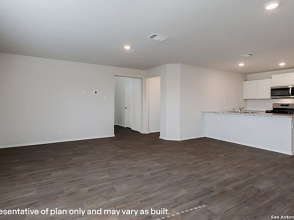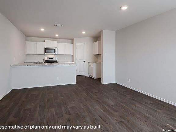 Introducing The Reese, a two-story home featuring 4 bedrooms, 2.5 baths and a 1-car garage in Riverstone at Westpointe, a new home community located in San Antonio, TX. Here you will find a beautiful open-concept layout with 2084 square feet of living space. Your living room, dining area and kitchen blend together seamlessly with plenty of room for everyday living. The gourmet kitchen includes quartz countertops, stainless steel appliances, and plenty of shaker style cabinets for ultimate storage. The private primary bedroom is located downstairs toward the back of the home and features quality carpet flooring and an attractive ensuite bathroom, complete with a single vanity sink and quartz countertop, shaker style cabinets, a linen closet, and a grand walk-in closet. The second story includes a large game room or loft that is open to below and provides plenty of space for game or movie nights. Additionally, a second full bathroom with a linen closet, a large storage space that includes a laundry room and three secondary bedrooms are also located upstairs. These rooms are versatile. Use them as bedrooms, offices, work out rooms or other bonus spaces. Additional features of The Reese floor plan include sheet vinyl flooring in entry, living room, and all wet areas, quartz bathroom counter tops throughout the home, and a rear covered patio (per plan) overlooking full yard landscaping and irrigation. This home includes our HOME IS CONNECTED base package. Using one central hub that talks to all the devices in your home, you can control the lights, thermostat and locks, all from your cellular device.