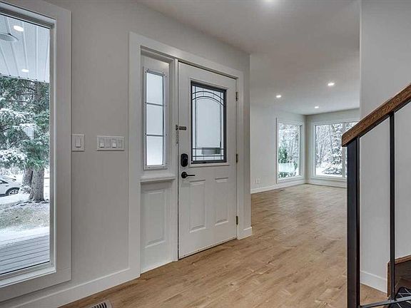 Numerous renovations completed by FOREFRONT Homes inside this BEAUTIFUL 2 story home with LEGAL SECONDARY suite and TRIPLE detached garage. Located in the desirable area of Woodlea, the EXTENSIVE custom renovations in the main and upper floors will be appreciated by discerning clients. With over 1800 square feet above grade, the upper floor features 3 bedrooms and 2 bathrooms. The primary suite is GENEROUSLY sized with 2 closets, one walk in closet, and a second large closet, and a massive en suite bathroom with 6 foot tub, CUSTOM tiled shower, double sinks and INFLOOR heat. The 2 remaining bedrooms are a great size 10 feet by 12 feet each, with ADJUSTABLE shelving in the closets. The upstairs bathroom has been completed renovated and is spacious. The main floor boasts a large living room area with access to both the large FRONT PORCH and the rear deck areas. The custom kitchen with island adjoins a large dining room area with OVERSIZED windows. A half bath and laundry room area with sink and storage area completes the main floor. The completely separate LEGAL and self contained basement suite features 2 good sized bedrooms, 1 full bath, laundry area, and open kitchen / living room and dining area with INFLOOR heat. Rinai on demand water system was replaced earlier this year, SHINGLES were replaced on roof and garage in August 2025, all new electrical in main floor unit, new appliances in the main floor unit. TRIPLE oversized detached GARAGE (24 feet by 32 feet) features gas heating, plug in for RV, tons of built in cupboards and plenty off additional off street parking on the parking pad in front. ALL of this on a quiet street, on a corner lot, with beautiful mature trees.