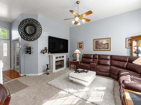 Affordable living on a Single family home!! This home features 3 bedrooms 2.5 bath home with a finished basement. This unique Home offers a 1st floor private office with very open floor plan. Newer hard wood floors throughout the first floor and newer carpet throughout the home... First floor laundry room comes fully applianced with high end appliances smart refrigerator also will be staying. Kitchen and bathrooms cabinets are stained and refreshed with new knobs. Back door to Kitchen has also been freshly painted. All the bedrooms located on the 2nd floor. Primary suite has private bath, walk in closet. Basement offers Kitchenette. family room, rough in bathroom just waiting to be finished. additional room with large closet. The home also boasts a newer roof (under 5 years old), a high-efficiency 2-stage HVAC system, and a 1-year-old water heater. Outside, the patio opens into a gardener's paradise with fruit-bearing vegetation, including grapevines, peach trees, and apple trees. This home is located in the Woods section, front end of the subdivision, Sits on a corner location. Fenced yard. Needs some finishing touches to make it your perfect place to call home!!! Close to schools and shopping and expressways. Great opportunity to own your own home! The house has video and audio security cameras. LET'S MAKE A DEAL!