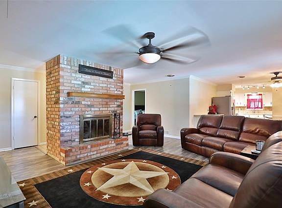 Home on quiet street, corner lot, in-ground pool! Three bedroom in split arrangement. Stained, scored sidewalk leading to covered front porch. Gutters. Large living with brick fire place creating separation of entrance and living. Open dining area adjacent to living and kitchen with painted accent wall. Spacious master bedroom. Updates include fresh paint, fixtures, luxury plank flooring. Mature landscaping, privacy fence.
