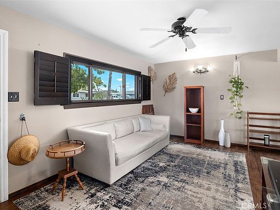Charming Home Ready for New Owners! This property has been well kept & updated through the years, from new windows & doors to full kitchen update to full bathroom update to new flooring. Warm-tone wood flooring throughout the living space & bedrooms + warm-tone tile in the kitchen & bath. Updated kitchen with creative storage solutions, granite countertops, wood cabinetry & stainless appliances (refrigerator included). Ceiling fans throughout & indoor Laundry (washer/dryer included). The bathroom has an oversized, all tile shower w/ full body sprayers. All three bedrooms have closets + large windows for loads of natural light. One bedroom has built in Murphy Bed that is included! The single car garage is currently being used as a work out space, but easily returned to garage parking if desired. The spacious & flat backyard is ready for your imagination with plenty of room for: home extension, ADU or pool. Large covered back patio provides loads of shade & added entertaining space. Leased solar panels were installed in 2020 for added energy efficiency and new energy efficient windows & slider door were installed in 2015. Perfect location in San Diego, close to everything!