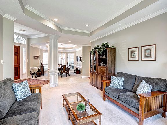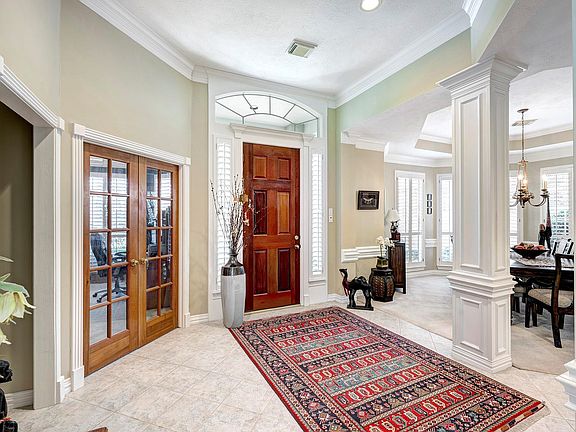 Custom-built home offers timeless curb appeal, modern comfort, and attention to detail throughout. Open, spacious layout includes 4 bedrooms, 3.5 baths, and refined finishes such as plantation shutters and elegant millwork. Formal living room and family room each have a fireplace, while the formal dining room provides a gracious setting for entertaining. Breakfast room overlooks the beautifully landscaped backyard w/koi pond and large covered patio that is great for outdoor living. Impressive kitchen features double ovens, island, walk-in pantry, and butler’s pantry. Expansive 1st floor primary suite offers a luxurious bathroom w/soaking tub, oversized shower, and large walk-in closet. Study w/built-in bookshelves located off formal entry. Upstairs game room and extra room offer adaptable space for guests, play, work, or relaxation. Updated bathrooms, abundant storage, and 3-car garage complete this exceptional home on a quiet cul-de-sac in a well-established neighborhood. Per Seller.