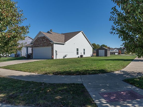 Like new 3 BR, 2 Ba ranch with a fantastic yard, large covered front porch with attractive railing creating a wonderful curb appeal. Inside you'll find vaulted ceilings from the great room through to the kitchen combined with great style. Immaculately maintained, this home offers an open floorplan with the great room, kitchen and dining area all open. The spacious feel is made even better with a beautiful and quite functional kitchen, loaded with cabinets and plenty of workspace for anyone who likes to cook or bake, the island with breakfast bar is just icing on the cake! The primary suite is spacious with an en suite bath and spacious closet. Large windows throughout the home bring in plenty of natural light to make the home feel fresh and brighten the interior environment. Laundry can be out of sight in the large laundry room and the washer & dryer are included. The owner had many upgrade selections when having this home built. Those include: a covered front porch, large double bowl vanity and garden tub/shower combo in the primary bath. Kitchen upgrades include an additional cabinet above the refrigerator, crown molding on cabinets, upgraded countertops, an island with breakfast bar, stainless appliances, and additional recessed lighting. Other upgrades include 9' walls/ceilings, ceiling fans, window trim/casing with small 'window seat' feature, drywall and insulated garage and more. There's still 2 more years on the builder warranty for structure, etc (information attached). Items excluded: storage shed, firepit, video doorbell, spice rack inside kitchen cabinet.