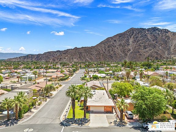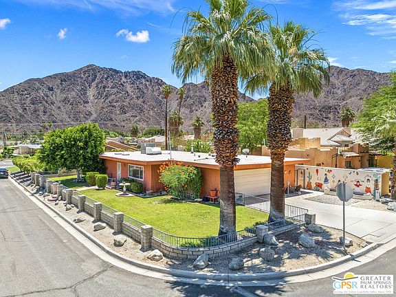 FIXER ALERT on corner lot in La Quinta Cove! Talk about POTENTIAL and just a short drive to the best of Old Town La Quinta. The open-concept living, dining, and kitchen areas create a spacious feel and work well with the great separation of bedrooms. The kitchen is filled with natural light and looks out onto the patio. The Primary Suite includes its own full bath for added privacy. Guest Bedroom Two features mountain views and sits next to a full bath shared with Guest Bedroom Three, which includes a fun mid-century style fireplace. There's a dedicated laundry area just off the kitchen and direct access to the two-car garage, which comes with built-in storage cabinets. Extra parking in the driveway adds even more convenience. Fantastic mountain views can also be enjoyed from the front porch. Be sure to take the Matterport Virtual Tour for a true sense of layout and flow. Fee Land (you own it) and no monthly HOA fee.