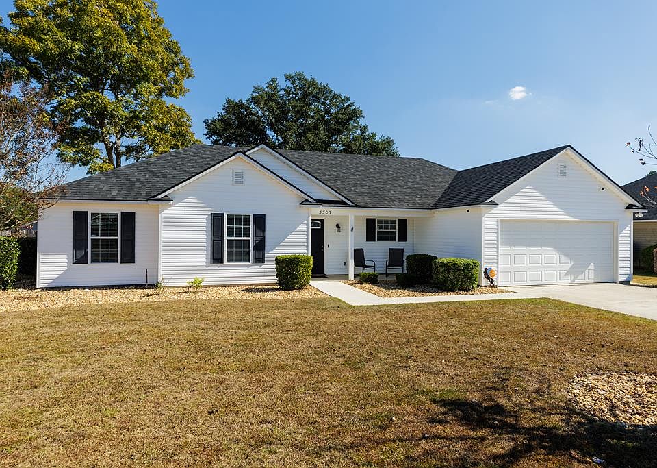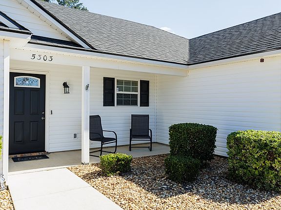 5303 Branch Point Drive - This well-maintained 4-BEDROOM, 2-BATH home offers convenience and a NEW ROOF. Step inside to a true foyer entryway that opens into a vaulted great room, creating a spacious and airy feel. The eat-in kitchen features a breakfast bar, pantry closet, newer dishwasher and microwave, and plenty of workspace for everyday living. All appliances are included. The primary suite includes a tray ceiling, walk-in closet, tub and separate shower, and dual vanity. Split floorplan with three bedrooms and bath on the opposite side of the home. Additional features include a laundry room off the garage with a sink, ceiling fans added to all bedrooms, and AT&T fiber internet. Enjoy peace of mind with a new roof (2024), new front door and frame (2024), newer water heater, and a security system with cameras. Relax outdoors under the covered patio overlooking the privacy-fenced backyard - most of the 4x4 posts have been replaced for durability. Conveniently located just a short drive to Moody AFB, schools, shopping at Aldi, Publix, Walmart, and restaurants. Video link: https://youtu.be/FbPgJufyzW0