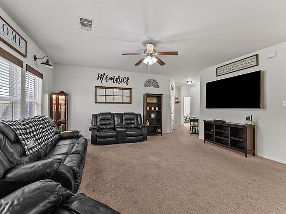 Well-maintained 3-bedroom home built in 2019 featuring an open-concept layout with an extended kitchen bar. Includes a flex room that can be used as an office, playroom, or hobby space. Enjoy the covered patio with no backyard neighbors and a full security system included. Conveniently located minutes from Brazos Town Center and zoned to highly rated Lamar Consolidated ISD.