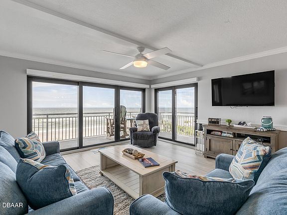 Welcome to Shoreham by the Sea, a beautifully maintained oceanfront condo community located directly on the no-drive beach in New Smyrna Beach. This fully furnished 2 bedroom, 2 bathroom corner unit offers prime ocean views and an open, light and bright floor plan perfect for coastal living. The stunning remodeled kitchen features solid surface countertops, stainless steel appliances, and stylish finishes. Recent interior updates include a new couch and loveseat, washer and dryer, bunk beds, patio furniture, A/C unit, and barstool chairs—ready for immediate enjoyment or rental. Shoreham by the Sea allows weekly rentals, giving you the flexibility to make this your new beach condo home or a strong investment property with great income potential. The complex has undergone extensive renovations, including total stucco repair and exterior painting, a new balcony, remodeled elevator system, refurbished pool and restrooms, and a freshly repaired and repainted parking lot. A 165,000k assessment has been fully paid by the seller, unlike many other units still undergoing assessments to comply with Florida's new laws. All reserve funding and state-required updates have been completed, giving you peace of mind. Enjoy being just minutes from shopping, dining, and all that New Smyrna Beach has to offer in this move-in-ready oceanfront gem! Schedule your showing today!