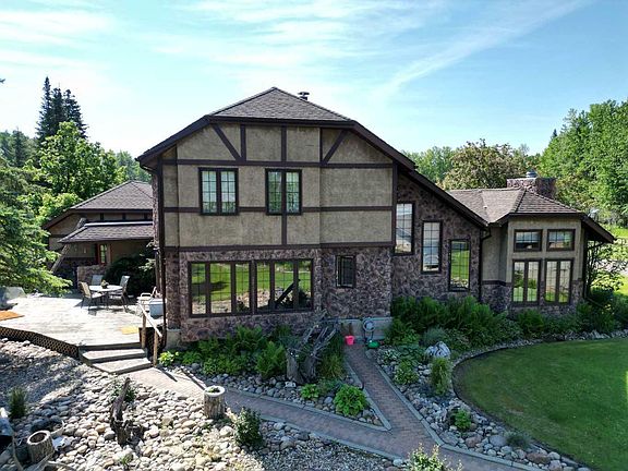 Stunning private acreage 5 minutes from Central Edson. 50 acres of beautifully manicured lawns, perennials, mountain ash and flowering plum trees line the driveway. Set up for horses, fenced and cross fenced with steel and pipe fencing, two stock waterers, dog pound. 5 car garage, Barn 20'x26' with attached lean-to 34'x48' for hay or RV storage, 3 car garage 24'x31' with 4th spot carport, L-shaped pole shed 50'x28.5' depth and 70'x20' depth, Gypsy Wagon Play house, Gazebo and shed. The tastefully decorated home has a main level primary bedroom (which was a hot tub room) with a claw foot bathtub, 2 piece bathroom, toilet and a sauna, large open kitchen and dinette and a separate dining room with an abundance of windows allowing a ton of natural light, extra wide hallways, a living room and a family room and built in bookshelves, a custom built spiral staircase leading to the 2nd level with 3 bedrooms and a large 5 piece bathroom. Fully finished basement with a bedroom, laundry room, storage, Den, craft room and a 3 piece bathroom. Shingles 4 years old, Septic pumped out 2 years ago, septic has new pump and wiring. River is approximately a mile away and you can take off on the Edson to Robb snowmobile trail. This beautiful home is being offer for sale by the original owners and has been enjoyed and cared since 1980.