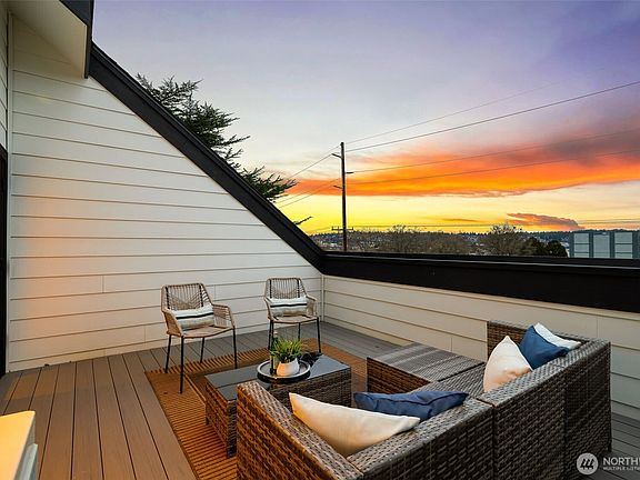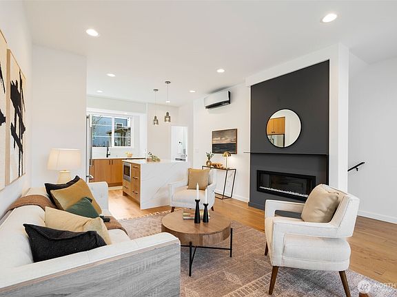 NEW PRICE! This beautifully designed like-new construction townhouse offers the perfect blend of modern luxury & comfort. The flex space/den offers the possibility for a 3rd bdrm, office, or whatever your heart desires. Featuring rich engineered hardwood floors, an open floorplan, & large windows that fill the space w/natural light, every detail is thoughtfully curated. Enjoy spectacular west-facing views of sunsets & the Olympic Mountains from the large private rooftop deck. With A/C, a show-stopping primary suite, & an attached garage, this home has it all. Overlooking serene Gilman Park, enjoy unobstructed views & easy access to pickleball courts & a playfield. Just minutes from Ballard’s vibrant scene of breweries, restaurants, & shops!