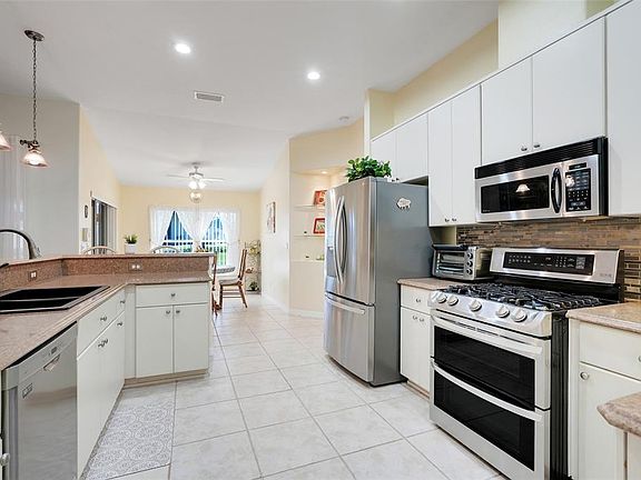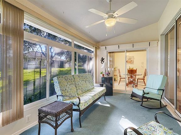 FREE RV, BOAT or TRAILER Parking in a desired gated neighborhood of LEGACY! Discover this charming three-bedroom, two-bathroom home offering almost 2100 square feet of comfortable living space. This Langley II model provides an ideal layout for those seeking extra room to spread out in one of the most desirable neighborhoods in Central Florida. Front screened in covered patio as you enter the home. This home has an X-LARGE LOT with no side neighbor! Mailbox and fire hydrant outside the home for convenience and discount on insurance. As you enter this beauty the ceiling is high with several built-in shelving. The spacious primary bedroom serves as a peaceful retreat, while two additional bedrooms that have flexibility for various uses including guests or a home office. The primary bathroom suite has garden tub with 2 sinks and separate commode. Two full bathrooms ensure convenience for daily routines and entertaining. The open floor plan creates a natural flow throughout the main living areas, perfect for both relaxing and hosting gatherings. The kitchen has a double oven with convection and gas stove with pull out in the 42-inch cabinets. The eat in kitchen has breakfast bar and beautiful back splash and built in spice rack cabinet. The 2 car garage has a screen, work bench and storage for your convenience. This 55+ gated community has lots of amenities which includes landscaping, cable, and WIFI with low monthly fees. This active residence club includes a beautiful resort style pool, hot tub, fitness center, Bocce ball, pickleball, billiards, shuffleboard, library, craft room, card room, NEWLY RENOVATED SOCIAL HALL, tennis, baseball field, walking trails with mature trees and lots of areas for bird watching are just to name a few. Legacy is a mature stable community with its own conservation areas in Central Florida with lots of lakes and rivers nearby to enjoy. Legacy’s builders have won many awards. Lots of shopping and close to the turnpike. A short drive to the Disney attractions, turnpike and airport. Outside the neighborhood is Rodello’s Italian restaurant and a dog park nearby. In the heart of Leesburg, this property puts you close to everything you need while Publix Super Market at Lake Harris provides convenient grocery shopping nearby. ALDI’s coming soon to the area. The location offers easy access to local amenities and attractions that make Leesburg such a desirable place to call home. This property represents an excellent opportunity for buyers looking for a move-in ready home in a great SAFE and SECURE neighborhood. The combination of generous square footage, practical bedroom configuration, and convenient location creates an appealing package for today's homebuyers. The thoughtful layout maximizes every square foot, ensuring each room serves its purpose well. Don't miss the chance to make this lovely Leesburg home your own.