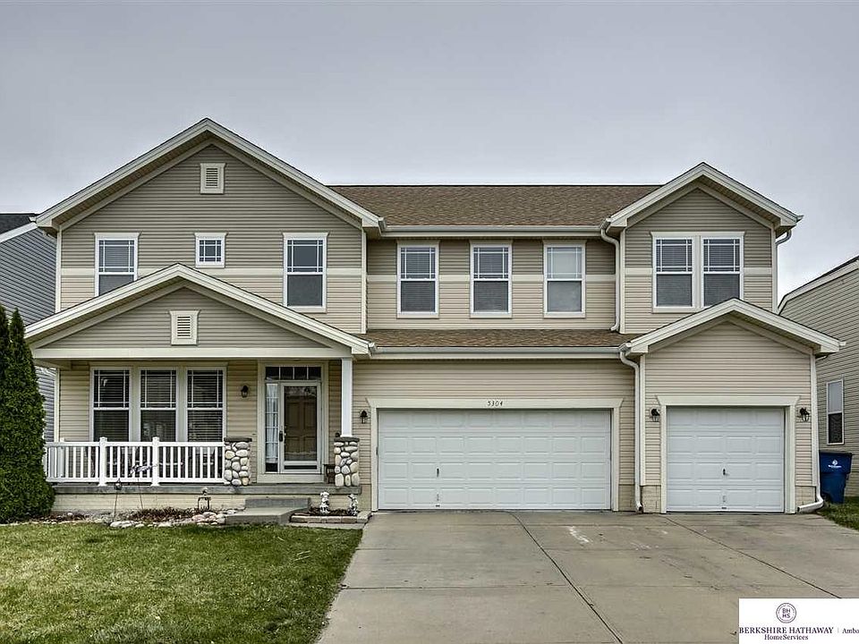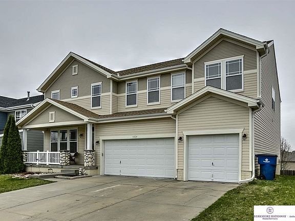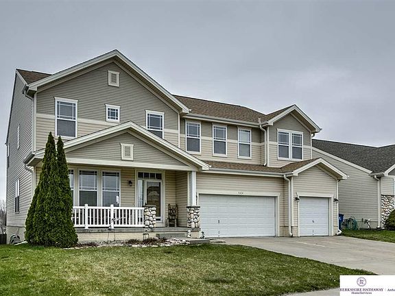 This 2-Story home in Millard Schools features a covered Porch, 2-story Tile entry, big LR & DR's, eat-in Kitchen w/Wood Floor, Island & large Deck, FR w/Gas Log, Den, main-floor laundry. The huge Master Suite has Crown molding, a Sitting Room, Tile Bath w/Double Vanities, Jetted Tub & walk-in closet. All the bedrooms are big plus upstairs Play Area. 1600 SF of Walkout Basement is waiting for you to finish. Home sits on a 1/3 acre fenced lot. 2017 New Paint & Carpet throughout entire home, New 3 ton HE Furnace & A/C system, and New ROOF! ALL new Custom Windows & Sliders (w/ Tint) on rear of home w/ transferable LIFETIME warranties!