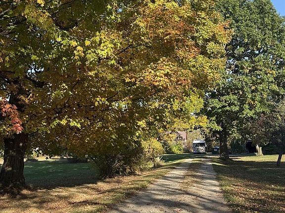 Privacy and located away from everyone!! No neighbors in sight!! Hardwood thru-out, the floors, the trim, the cabinets are all original and are so cool! Living room has a spot for a wood burner ready to go. 3 bedrooms with a possible 4th. Rooms are spacious and yes there is a first floor bedroom!! Full basement for storage. Chicken coop, small barn, detached garage and an older barn that still has some life in it. Long beautiful driveway lined with trees! Welcome home to your 10 acre retreat.