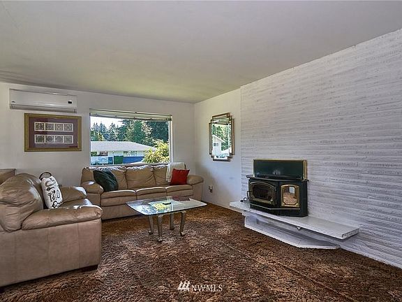Charming Rambler in Desirable Neighborhood. 3 bedroom 1 full bath home. Hardwood floors under carpets. Large vinyl windows bring in the natural light. Cozy living room and dining room with ductless heat pump and brick fireplace with wood pellet insert. Kitchen has plenty of cabinet and counter space. Bedroom with French doors leading to covered hot tub. Two expansive decks. All appliances stay. Fully fenced back yard. Single car garage and plenty of parking. Close to Boeing and shopping.