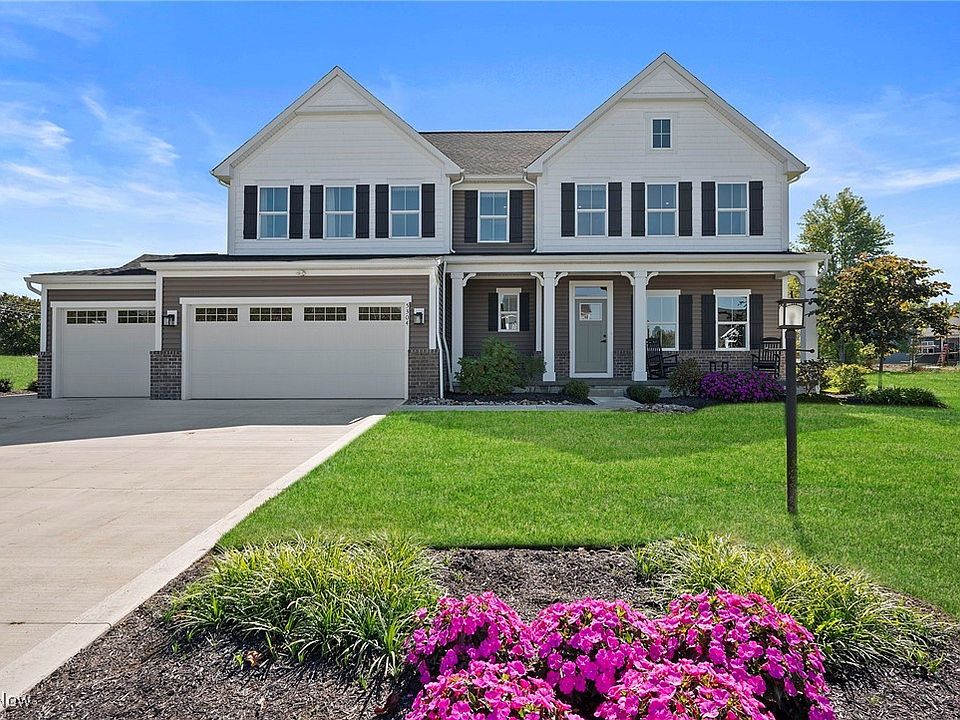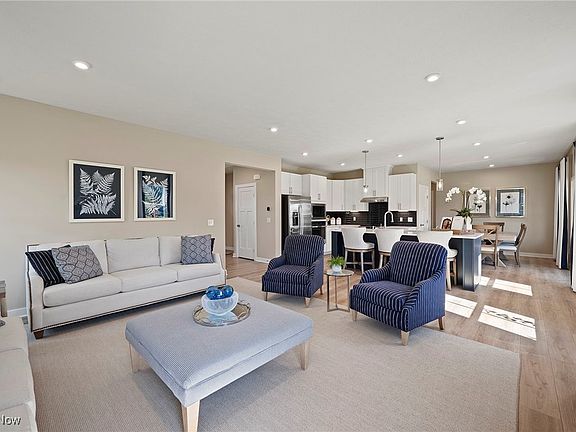 A unique opportunity to own a FULLY FURNISHED home, beautifully accessorized and professionally designed, never lived in, and previously showcased for a short time as a builder’s model in the Walnut Ridge Development in Sheffield Village. Located near the Avon/Sheffield border and convenient to I-90, Avon Commons, parks, Lake Erie, and many other amenities. This home includes a 3-car garage, full front porch, covered low-maintenance composite deck, over $128,000 in upgrades, and professional landscaping with a sprinkler system. Offering more than 3,550 sq ft of living sq ft including a finished basement with a full bath, 4 bedrooms, 3.5 baths, a first-floor office, and a separate flex room that can serve as a living room, second office, or den. An upgraded eat-in kitchen boasts a large center island, quartz countertops, tile backsplash, undercabinet lighting, and stainless steel appliances including both a range and wall oven. The kitchen is open to a dining area with access to the covered deck and a sun-filled family room. The owner’s suite offers two walk-in closets and an en-suite bath with a double vanity and tiled Roman shower. One of the guest bedrooms also includes a walk-in closet. Additional highlights include a mudroom with built-in storage bench, second-floor laundry, abundant recessed lighting, and thoughtful finishes throughout. INCLUDED are ALL furniture and decor currently in the home, ALL kitchen appliances, washer/dryer, window treatments, and warranties.