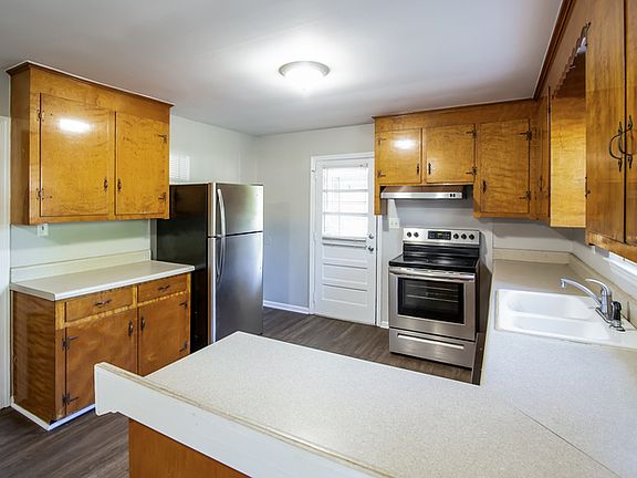 Each of the three bedrooms offers a comfortable layout and ceiling fans for year-round comfort. The full bathroom includes tiled walls and a long countertop for added convenience. The single-level design makes every room easy to access, keeping the layout practical and inviting.