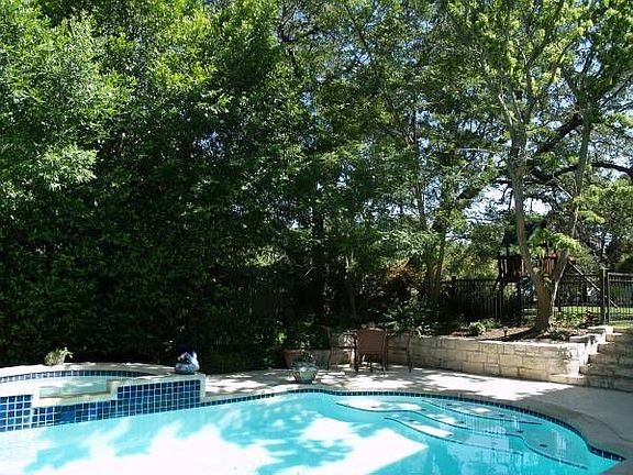 This beautiful Fedrick Harris home, located in the prestigious River Place community, is situated on a lovely tree-covered cul-de-sac lot. Amenities include hardwood flooring, high ceilings, crown molding and large arched windows. The open and bright floor plan features a front and back staircase, gourmet kitchen with Center Island and large family room with built-ins. Venture outside where you will find a wooded and private backyard featuring a custom pool and spa, professional landscaping and a separate enclosed grass area. Whether entertaining family and friends or settling in for a cozy evening this home offers it all while being located just minutes from exemplary schools as well as Lake Travis and Lake Austin.