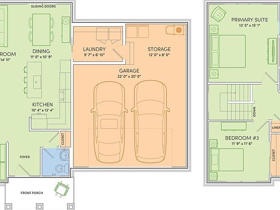 - Attached garage spaces: 2