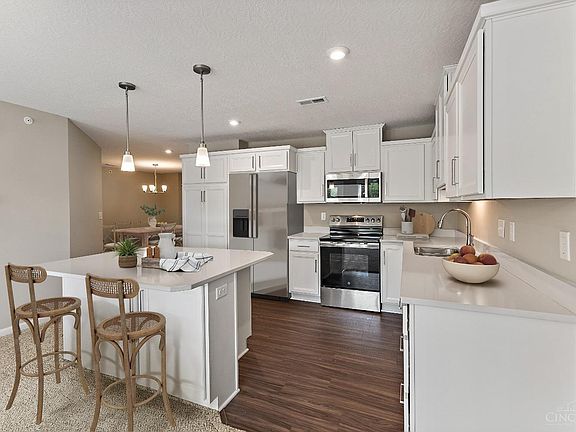 New construction by Fischer Homes in beautiful Majors at Shaker Run featuring the Monticello plan! This lovely lower level condo offers a gorgeous island kitchen with stainless steel appliances upgraded cabinetry and durable quartz counters and overlooks the large family room that walks-out to the 12x08 patio with grassy area for the pets. Primary suite has attached private bath and walk-in closet. Additional bedroom and hall bath. Laundry room in unit.