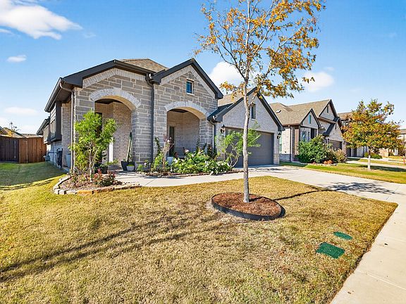 This is a modern, move-in-ready home in a newer subdivision sought after Willow Wood community — great for someone looking for low maintenance and new construction. With 3 beds and 2 baths in 1,840 sq ft, it's well sized for a small family, or someone wanting an office or guest space. The private primary suite is a true retreat, complete with a charming window seat, a spa-inspired bathroom with dual vanities, separate tub and shower, and a generous walk-in closet. Two additional bedrooms offer flexibility for guests, family, or a home office. The outdoor space is a big plus: a front porch and a back covered patio give flexibility for relaxing or entertaining. The build quality is solid with brick stone exterior, designed landscaping (sprinkler), and modern finishes (granite countertops, engineered wood). Additional upgrades include a full sprinkler system, rain gutters, and security pre-wiring. Given its location in McKinney, there's good access to schools, shopping, and major roads and quick access on highway 75! Ideally located with convenient access to major highways, this home offers an easy commute—approximately 35 miles to Downtown Dallas and about 30–40 minutes to DFW International Airport.
