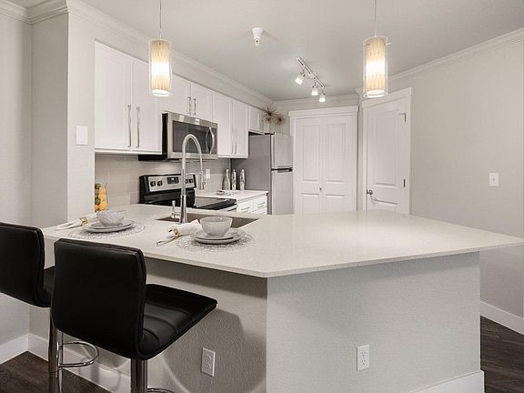 - Exterior features: Barbecue, Bike Repair Station, Business Center, Flexible Lease, Flooring: Laminate, Game Room, Heating: Electric, More Than One Year Lease, On-Site Management, One Year Lease, Online Maintenance Portal, Online Rent Payment, Package Receiving, Pet Park, Pet Washing Station, Reserved parking starts at $75 per month. Garages start at $145 per month. Contact the leasing office for more information!, Shuffleboard, Six Month Lease, Spanish Speaking Staff, USB Wall Outlets, View Type: Wooded
