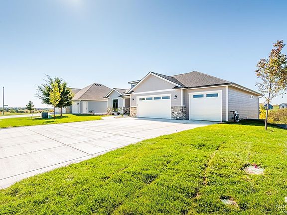 Welcome to this stunning zero entry residence, perfectly blending luxury, comfort, and functionality. Boasting five spacious bedrooms and three beautifully appointed bathrooms, this home offers ample space for both family living and entertaining guests. A dedicated home office provides the ideal environment for remote work or study. The open-concept living areas are filled with upscale finishes, including custom cabinetry, and premium flooring. The Kitchen is complete with granite countertops, a large center island, stainless steel appliances, and a walk-in pantry. The adjacent dining and living areas flow seamlessly, creating an inviting space for gatherings. Retreat to the expansive primary suite, which includes a luxurious en-suite bath with dual vanities, large shower, and a walk-in closet. Four additional bedrooms provide flexibility for guests, hobbies, or a growing family. Also included is a three-car garage, covered deck and irrigated yard and landscaping.