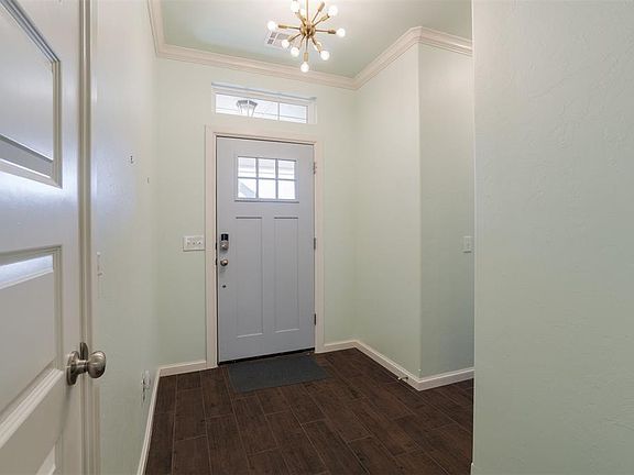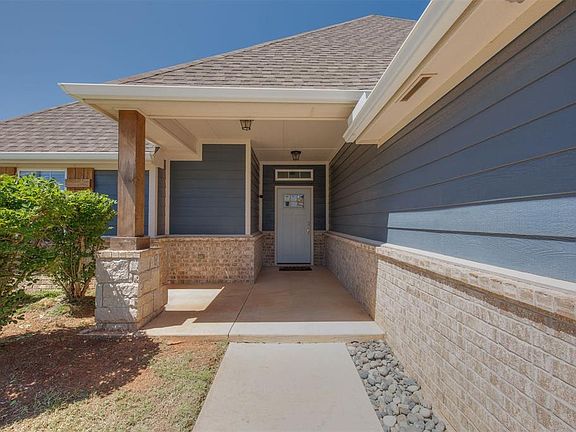Nestled in the sought-after Edmond community of Monarch Ridge, this charming three-bedroom, two-bathroom home is a true gem. As you step inside, you'll be welcomed by an open floor plan that effortlessly blends style and functionality. The bright and airy living room is equipped with large windows that flood the room with natural light and a cozy gas fireplace, perfect for chilly nights. The kitchen is a chef's dream, showcasing high-end appliances, soft-close cabinets, under cabinet lighting, and stunning quartz countertops. You'll appreciate the extra-large pantry, providing ample storage space for all your culinary essentials and more! The primary suite offers a relaxing retreat with a spacious en-suite bathroom complete with a luxurious soaking tub, large shower, dual vanity, and separate water closet. The spacious closet features an additional door providing convenient access to the laundry room. The extended garage comes equipped with an above-ground storm shelter, offering peace of mind during inclement weather. Outside, the large corner lot offers ample space for hosting summer barbecues while the covered patio is ideal for enjoying a quiet morning coffee. Located in the highly sought-after Deer Creek School District, this neighborhood also boasts a community playground, pond, and pavilion, perfect for outdoor fun. Don't miss the opportunity to make this lovely property your new home sweet home!