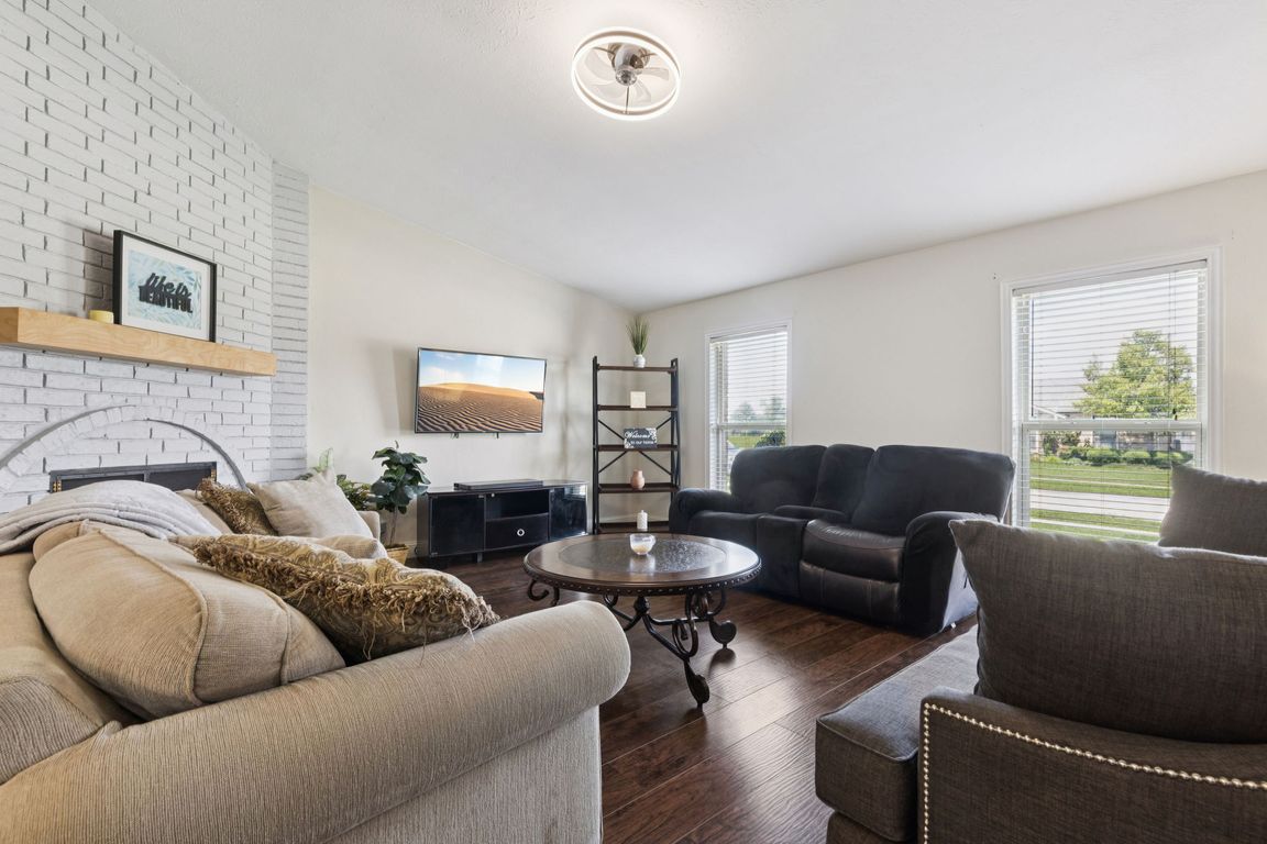 Sparkling poolCozy floor-to-ceiling brick fireplacePrivate backyard oasisAbundant natural lightOn-trend laminate flooringSpacious bedroomsThoughtful design touches