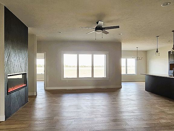 Modern electric fireplaceMaster suiteSlate accent wallSpacious rec roomSpacious pantryCovered back patioCustom roll-in shower