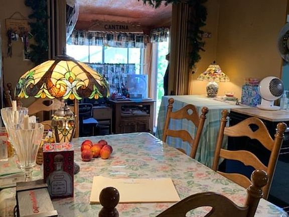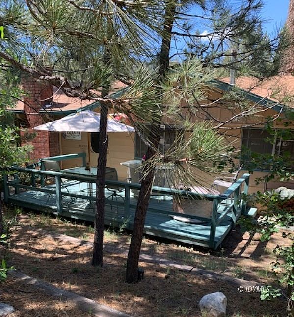 This single-story home is close to Idyllwild Arts Academy. The home has three bedrooms plus a full bath and three-quarter bath and is on SEWER. Living room features a brick fireplace with an air-tight insert. The interior motif is "charming mountain." One bedroom has a gun safe bolted to the wall and floor. The residence comes mostly furnished with high quality furnishings, complete with bedding. Off the kitchen is a large bonus room/game room with air conditioning and a wall heater. Also off the kitchen is a large laundry room with a closet and a pull-down ladder for easy access attic storage. It could be easily converted to a child's bedroom. Kitchen and laundry appliances and instant hot water by kitchen sink are also included. The front deck comes with a nice patio set with umbrella, a fire pit and patio bar. The larger rear deck has a set of patio furniture too, and a view of Tahquitz Peak. A beautiful, large, high-producing apple tree (planted by Sellers 20 years ago) stands next to the detached 2-car garage. A concrete drive runs beside the house from Toll Gate to the garage. The lot is almost a 1/4 acre and is completely fenced. 0wner occupied but EASY to show. Call LB