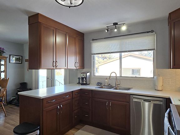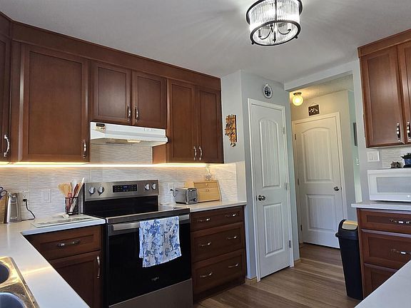 Warm & welcoming 4 bedroom family bi-level with a long list of upgrades and renovations in the past two years! Custom built kitchen cupboards with quartz counter tops, double sink, tile back splash, under cupboard LED lighting and stainless appliances. Primary suite features a 2 piece ensuite. Basement is fully finished with a bedroom, storage room, laundry, RENOVATED bathroom and a cozy rec room with a NEW wood burning stove. Fully fenced yard with concrete pad, garden shed, nat. gas BBQ line, RV parking and a double heated/insulated garage (new shingles) with back alley access. Walking distance to schools, playground and amenities.