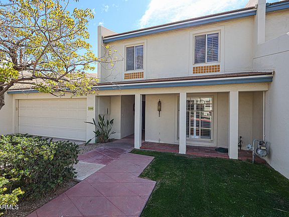 Wonderful opportunity to own this fabulous townhome in La Jolla central Phoenix! 3 bed, 3 bath, 2 story, beautiful Murphy Bed, 2 car garage. Lovely quite low maintenance back yard with patio for relaxing. Front entry courtyard, Eat in kitchen provides a Viking Gas cooktop, double wall ovens, with ample counter space, porcelain floors downstairs, plumbing, baths and kitchen updated 2016. Formal dining, sunken living/family room. Three beautiful French doors leading to private yard! Community pool steps from your front door. Come preview this lovely townhome.