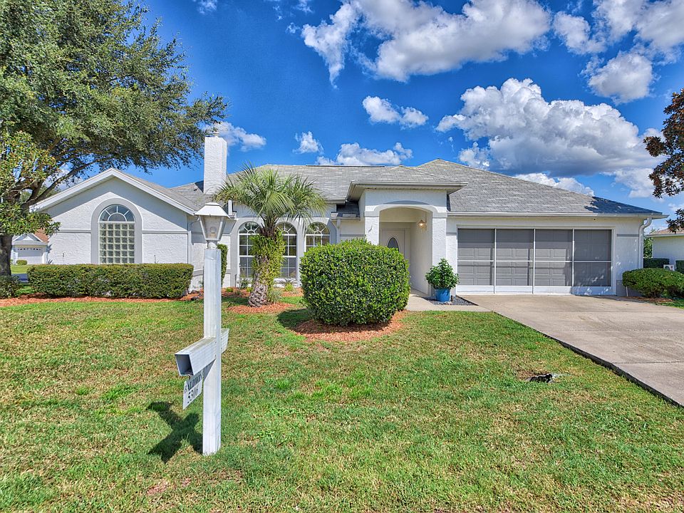 LARGE CORNER LOT, NEW ROOF & A/C, RECENTLY PAINTED 2 Bd/2Ba house. Lush landscaping leads to front door with tiled foyer. Formal living room has built-in fireplace and three windows. Kitchen has stainless steel appliances, including time-saving dishwasher, clear-top range, built-in microwave and tray ceiling. Family room is located off the kitchen and has laminate flooring , Master bathroom has reconditioned walk-in shower with new fixtures, double sink vanity and with storage. Guest bathroom has tub and shower and linen closet. Inside laundry room is off formal family room with new vinyl flooring. House has new garage door opener, new sprinkler control box, new hot water heater and new carpeting. Florida room is screened with upgraded new flooring with spectacular golf view,