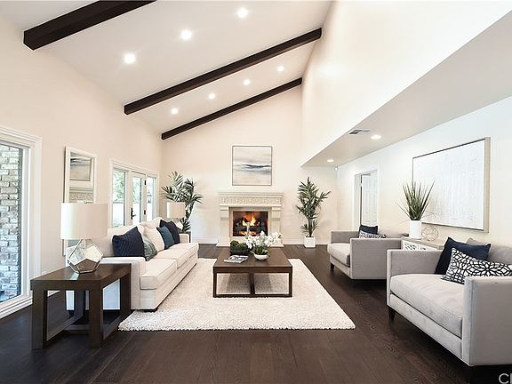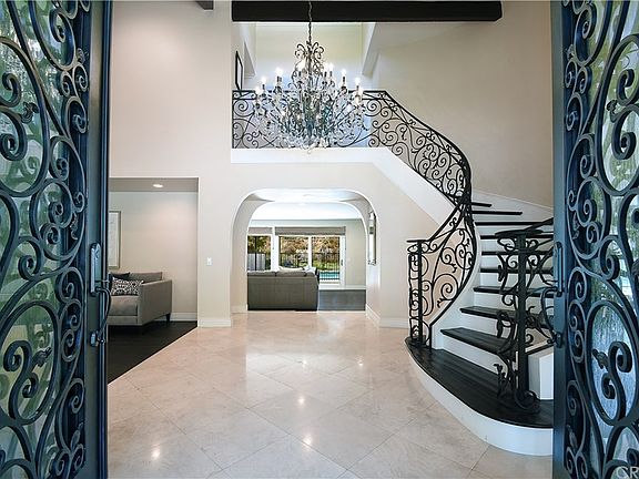 This elegant Mediterranean inspired home is perfectly situated in the Ridgecrest Intermediate School neighborhood. Gorgeous wrought iron entry doors lead you to a formal entry with dramatic sweeping staircase & sparkling grand chandelier. All 4 bedrooms are ensuites and home lends itself to large entertainment & intimate gatherings. High ceilings, dark wood beams, new limestone fireplace are focal points for the spacious living room. Large family room is accented by new limestone fireplace, prewired for mounted TV adjacent to new powder room. The private office & downstairs bedroom has new bathroom with Carrera marble flooring and tile surround. An expansive kitchen has dining area & island, formal dining room with bay window nook, laundry room round out the downstairs. Upstairs master has a sitting area, new limestone fireplace, two separate walk in closets, and generous sized bathroom with soaking tub, separate shower and dual sinks. New updates throughout include engineered wood flooring, Anderson windows & doors (except family room), electric subpanel, plantation shutters, new American Standard HVAC system downstairs, interior doors with fixtures, recessed lighting, smooth ceilings & crown molding & baseboards. New Jackshaft garage doors w panel access, epoxy flooring, a 240 Volt Charger for Tesla highlight the three car garage. Backyard has a fenced pool, large flat grassy area perfect for soccer, covered patio and gated access to hiking trail to Del Cerro.