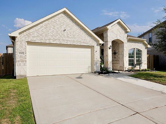 Welcome to 5307 Camerford Court, a one-story home in the desirable Kendall Lakes community of Alvin. Situated on a quiet cul-de-sac and a larger lot, this 3-bedroom, 2-bath residence offers a functional open layout designed for modern living. The kitchen features quartz countertops, a nice island with storage, mosaic backsplash, 42” upper cabinets, and stainless steel appliances—all open to the spacious family room. The private primary suite includes a quartz vanity with double sinks, a separate garden tub, walk-in shower, and a walk-in closet. Secondary bedrooms are generously sized and thoughtfully designed. A dining room or flex space adds versatility to the floor plan. Outdoor living is enhanced by an extended covered patio, perfect for relaxing or entertaining. A whole house Generac generator provides peace of mind, while energy-efficient features such as a Tech Shield radiant barrier and ENERGY STAR® certification help reduce utility costs. Make this beauty yours today!