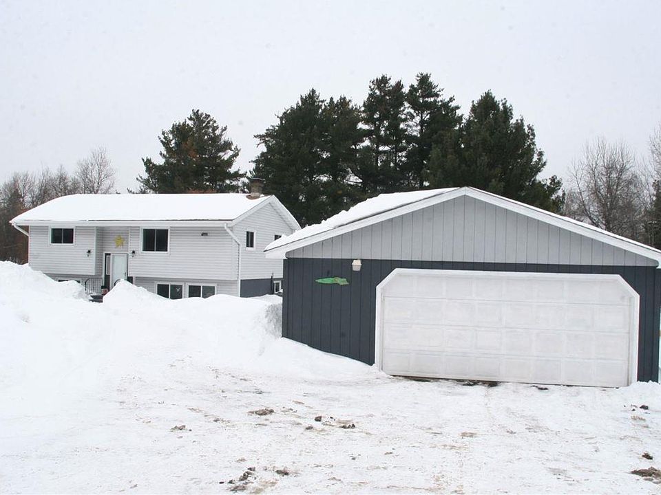 Well maintained, energy efficient 4 bedroom 2 bath split entry on 5 wooded acres with a 2 car detached garage and a black top driveway that goes right to the front door. This bright, clean home is move-in ready, the stove and refrigerator are 3 months old, the front steps were installed in 3 years ago, the central air was replaced in 2014, there are newer windows, in the large walkout utility room there is a newer propane forced air furnace. The ceilings were spray foamed and your average monthly heating bill for the last 4 years has been $76 and the seller like to keep it warm. There many flowers and trees on this beautiful corner lot. You are also just down the road from the Pike Lake Public Access.