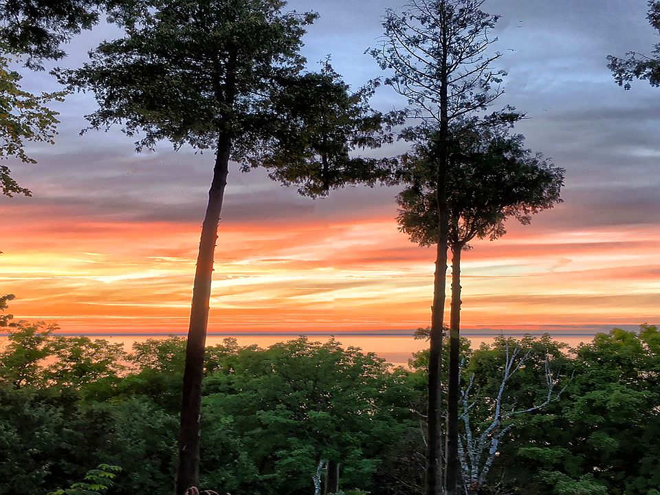 Perfect sunsets is what you will experience everyday overlooking the Bay of Green Bay in this upper condo in a park like setting. Between Door County and Green Bay is great location. A hidden gem like no other. This 2 bedroom, 2 bath condo has new flooring throughout, remodeled bath, new paint and dishwasher is the perfect place to relax. A fireplace will keep you warm in the winter. All you need to do is move in and enjoy the fantastic view. Furnishings are negotiable and for sale