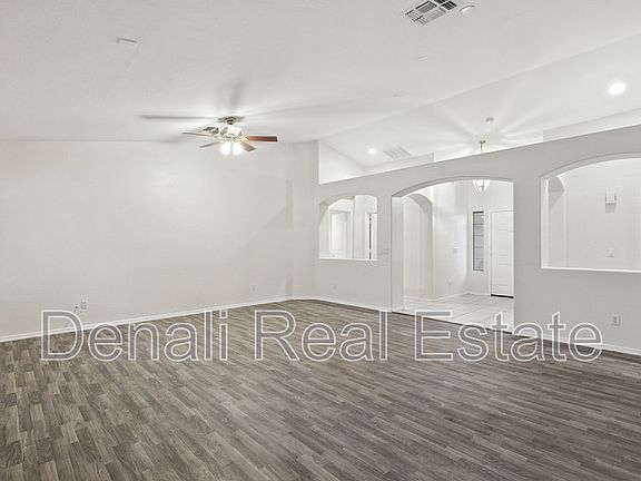 No Application Fees! Beautiful and spacious 4 bedroom, 2 bathroom Glendale home located in the desirable Manistee Ranch community. This well-maintained home offers a large open floor plan with vaulted ceilings, archway entryways, neutral paint throughout, updated fixtures, upgraded two-inch wood window blinds, and ceiling fans in each room. Enjoy plenty of living space with a huge front living room filled with natural light, a separate family room with vaulted ceilings, and a formal dining area. The spacious kitchen features abundant cabinet and countertop space, a separate pantry, an extended island with breakfast bar, dining area, and all appliances included. The large primary suite has backyard views, vaulted ceilings, a walk-in closet, double sink vanity, garden soaking tub, and step-in shower. Each additional bedroom also includes walk-in closets. The two-car garage provides ample parking and storage. Step outside to a beautifully landscaped backyard with an extended covered patio, refinished patio surface, additional paver patio areas, a synthetic grass lawn, and low-maintenance desert landscaping. Solar panels are included and expected to provide excellent cost savings on utility bills.