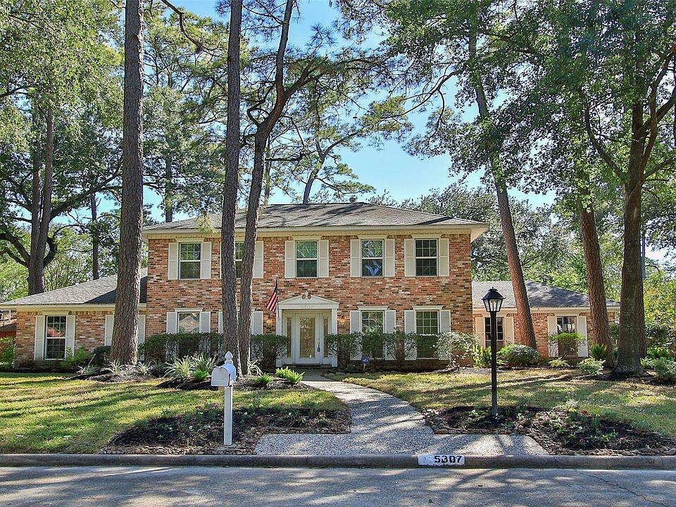 Spacious 5 bedroom, 3.5 bath home with a stunning elevation on a desired cul-de-sac in prestigious Huntwick Forest. It is priced so that you can update the home to make this one your own. Large den, breakfast room and sunroom with beautiful wood flooring directly off the kitchen makes this home great for entertaining. Gorgeous gas log fireplace in the den & sunroom. The kitchen has a 5 burner gas cooktop, a convection oven and a warmer oven. Large walk-in butler's panty is a plus. The primary suite is perfect for those needing a large space with it's own sitting area. The home includes a study down that could serve as a 6th bedroom if needed. The home sits on a 15,600 SF wooded lot with a spectacular backyard. You will love spending time in in the pool during the hot days of summer. Come see this home today. At his price it won't last long.
