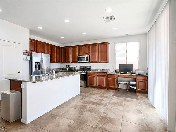 Covered patioExpansive backyardKitchen with granite countertopsTons of cabinetry