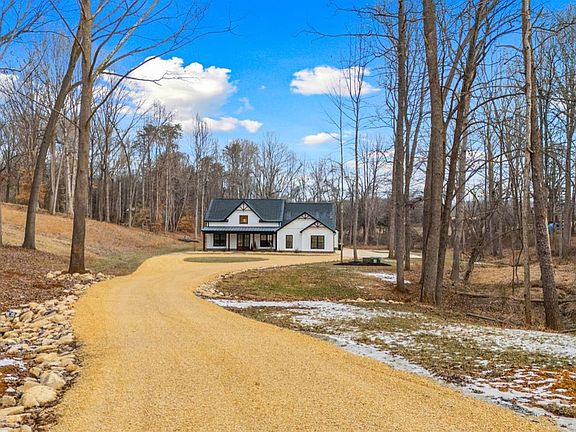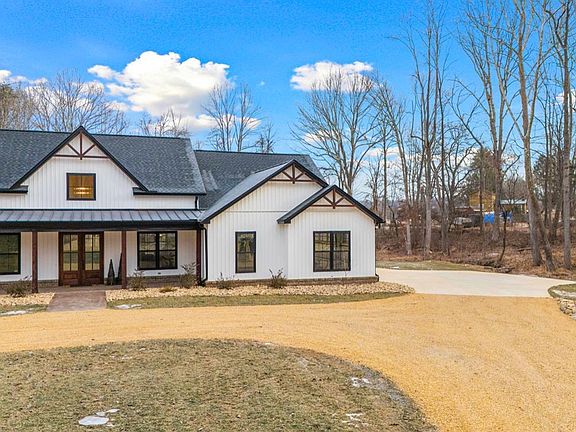 This 2,872sf modern farmhouse blends rustic charm with contemporary style on 4.25 serene acres bordered by a creek. Featuring 4 bedrooms, 3 full bathrooms, and main-level living, the home boasts 8-foot mahogany entry doors, cathedral ceilings, and an open-concept layout. The gourmet kitchen includes a large waterfall island, granite countertops, and Cafe appliances, while the great room offers a cozy gas fireplace. The luxurious primary suite features a spa-like ensuite with a soaking tub, walk-in steam shower, and dual vanities. A 3-car attached garage provides ample storage, while a detached 2-car garage includes space for a future apartment above. The backyard layout is ready for a future pool, making this property ideal for entertaining or relaxing. With its blend of modern amenities and country appeal, this home offers both comfort and versatility. Schedule your showing today!