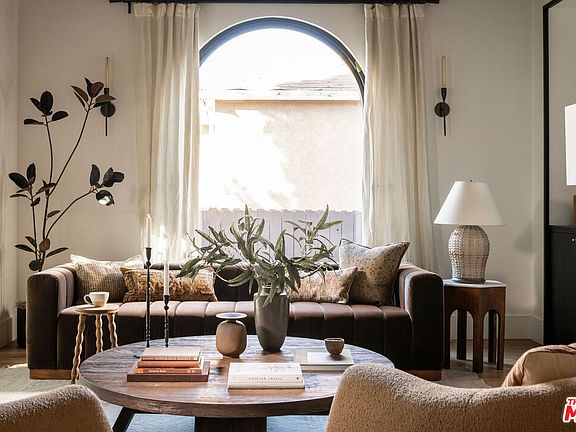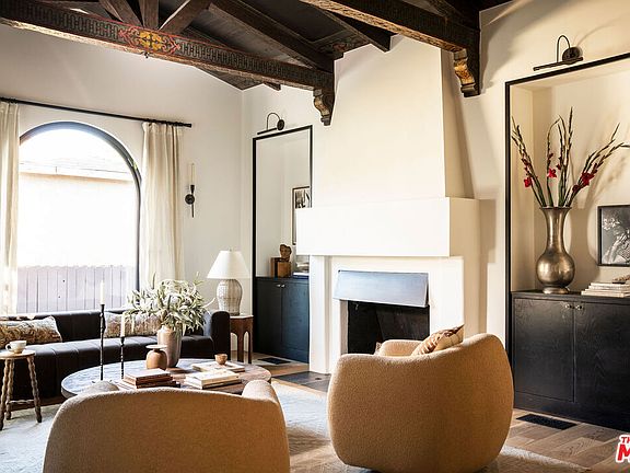 A soulful 1928 Spanish thoughtfully restored and renovated to honor its original character while introducing a refined modern sensibility. Beyond an arched alcove entry framed by a mature olive tree, the home opens to a sun-filled living room with vaulted ceilings and beautifully restored hand-painted beams that span both the living and dining areasan intricate nod to its Old World craftsmanship. A wood-burning fireplace anchors the space and flows into a chef's kitchen with marble counters, custom cabinetry, a Bertazzoni range, oversized island, and walk-in pantry. The main house offers four bedrooms and three bathrooms, including an expansive primary suite with high ceilings, a custom walnut walk-in closet, and a spa-like bath featuring a marble slab shower accented by timeless Waterworks and Phylrich fixtures. French doors open to a Saltillo-tiled deck overlooking a fully hedged-in grassy backyard that creates a private escape, perfect for entertaining or quiet afternoons outdoors. The property also includes a fully permitted ADU with stainless-steel appliances and butcher-block counters, plus a versatile storage shed ideal for an art studio or creative workspace. Tucked on one of the most beautiful streets just off tree-lined Angeles Vista Boulevard, your drive home feels like a serene escapeyet you're moments from Hilltop Coffee, Jon & Vinny's, and a quick hop onto the 90 Freeway connecting you to everything on the Westside.