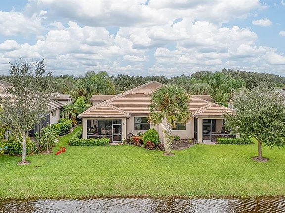 WATER VIEW • MOVE-IN READY • 55+ DEL WEBB NAPLES Welcome to this beautifully maintained SERENITY VILLA, perfectly positioned on a lot with tranquil water views in the desirable BELLERA neighborhood of Del Webb Naples. This 2-bedroom, 2-bath plus den floor plan offers a bright and open layout designed for comfortable living. The PRIMARY SUITE is a true sanctuary, featuring peaceful water views, a walk-in closet, dual vanity, and a glass-enclosed shower. The DEN provides the ideal space for a home office, hobby room, or guest retreat. Enjoy added convenience in the laundry room, complete with cabinet storage, a utility sink, and washer and dryer. FURNISHED and move-in ready, this villa allows you to start enjoying the Del Webb lifestyle right away.This home comes with the SOCIAL MEMBERSHIP, but take note GOLF LOVERS, Panther Run Golf Club offers optional MEMBERSHIPS with premium golf experiences just steps from your backyard. In Del Webb Naples, you’ll enjoy WORLD-CLASS AMENITIES that rival luxury resorts: dine at the Rusty Putter Restaurant, soak in the RESORT-STYLE or LAP POOLS, break a sweat in the state-of-the-art FITNESS CENTER, and play your way through PICKLEBALL, TENNIS, bocce, billiards - even a top-tier GOLF SIMULATOR! Need groceries, church, or a bite to eat? Just hop in your golf cart and cruise into town - Publix and the heart of Ave Maria are just minutes away. This isn’t just a home - it’s a LIFESTYLE UPGRADE in one of Southwest Florida’s most vibrant 55+ communities. Don’t miss your chance to live where fun, fitness, and friendships flourish year-round!