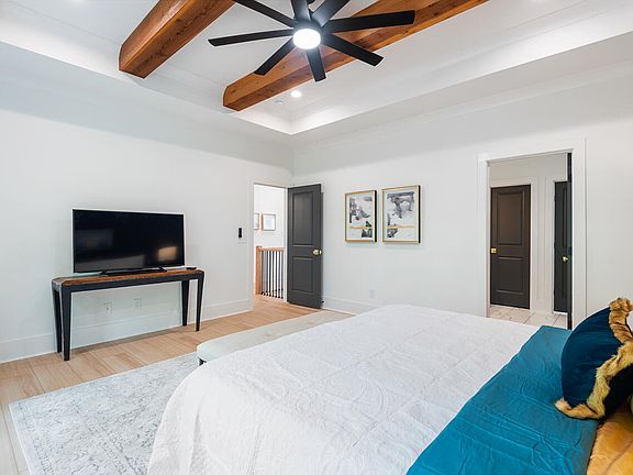 - Bathtub/Shower Combination, Beamed Ceilings, Ceiling Fan(s), Chandelier, Crown Molding, Double Vanity, Eat-in Kitchen, Entrance Foyer, High Ceilings, Kitchen Island, Open Floorplan, Quartz Counters, Recessed Lighting, Separate Shower, Smooth Ceilings, Walk-In Closet(s), Walk-In Shower