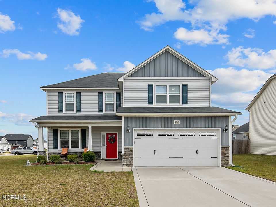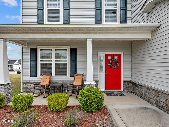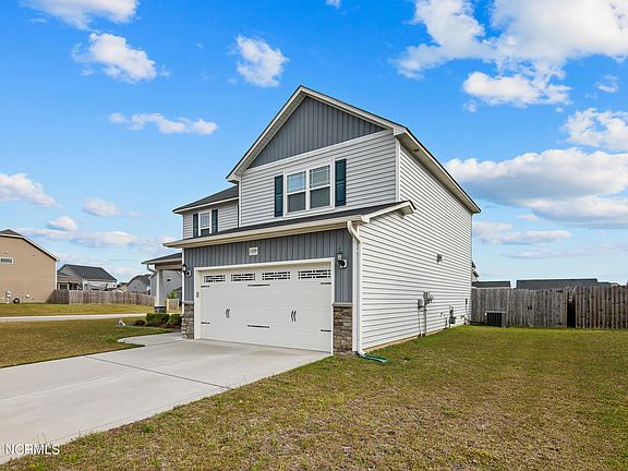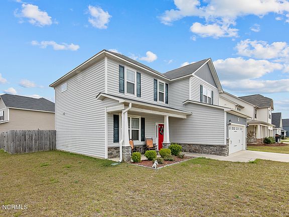 Make way to your new home in the Gray's Creek School District. Enter your new home by crossing over the front porch and in to your foyer. The foyer includes a half bath and a coat closet. The dining room, with trey ceiling, is on your left, which is off of the kitchen. The kitchen has recessed lighting, granite countertops, tile backsplash, a pantry and an island. Through the kitchen you will find the living room with gas fireplace with surround sound capabilities. Upstairs you will find four (4) bedrooms, the guest bathroom and the laundry room. The primary bedroom and on-suite has a separate stand-up shower, water closet, garden tub, double vanities and a linen closet. Enjoy the fresh air on your covered back patio with a fenced in yard. Enjoy warm summer days in the community pool. Schedule a showing to make this home yours!