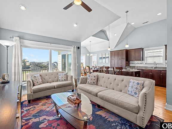 GOLF COURSE FRONTAGE + SOUND VIEWS + OCEAN PEEKS + PRIVATE POOL + OVER $62K IN 2025 RENTS = THE ULTIMATE OBX INVESTMENT! This beautifully designed 5-bedroom, 4.5-bathroom home, located in the sought-after Village at Nags Head, offers horizon VIEWS OF THE ALBEMARLE SOUND, OCEAN PEEKS, a prime location OVERLOOKING THE 12TH GREEN of the meticulously maintained Nags Head Golf Links and a PRIVATE POOL! The top floor features an open-concept living, dining, and kitchen area with timeless hardwood floors and an expansive sun deck showcasing stunning golf course views. The modern kitchen features granite countertops, a custom island with storage and breakfast bar, stainless steel appliances, floor-to-ceiling pantry cabinetry, and a tiled backsplash with glass mosaic inlay. The dining area is conveniently situated just off the kitchen, providing an open yet intimate setting. Both the dining and living area offer deck access and windows around the perimeter for a bright, airy feel. The primary suite on this level is a private retreat, with ocean peeks from its windows and an ensuite bath featuring tile flooring, an oversized glass-enclosed tiled shower, double vanity, and linen closet. Head down a half-flight of stairs to find a conveniently-located powder room off the landing. The mid-level of this home is designed for both relaxation and fun, featuring a gaming lounge with a pool table and a shaded deck overlooking the golf course. Two spacious ensuite bedrooms on this level offer private baths, direct deck access, and hardwood flooring throughout. A dedicated laundry area completes this level. The ground floor is an entertainer’s dream with a lounge area, wet bar, refrigerator, and dry entry. Two additional bedrooms share a well-appointed full bath. Head outside to splash the day away in your private pool, have a cookout in the shaded grilling area, or rinse off in the outdoor shower after a fun-filled day at the beach. RENTAL GUESTS LOVE THIS LOCATION -- just moments from Jockey’s Ridge State Park, the Epstein St. beach access offering parking and a bath house, charming shops and fantastic dining. Take coastal living to the next level with optional membership at the Village Beach Club, with an oceanfront pool complex, snack bar & café, poolside food & beverage service, water aerobics classes, swimming lessons, and more. This home would make a fabulous primary residence, second home, or investment property (with STRONG AND CONSISTENT RENTAL HISTORY and $81K RENTAL PROJECTION!). Don’t miss this opportunity to own a golf course home with coastal views in the heart of Nags Head….schedule your showing today!