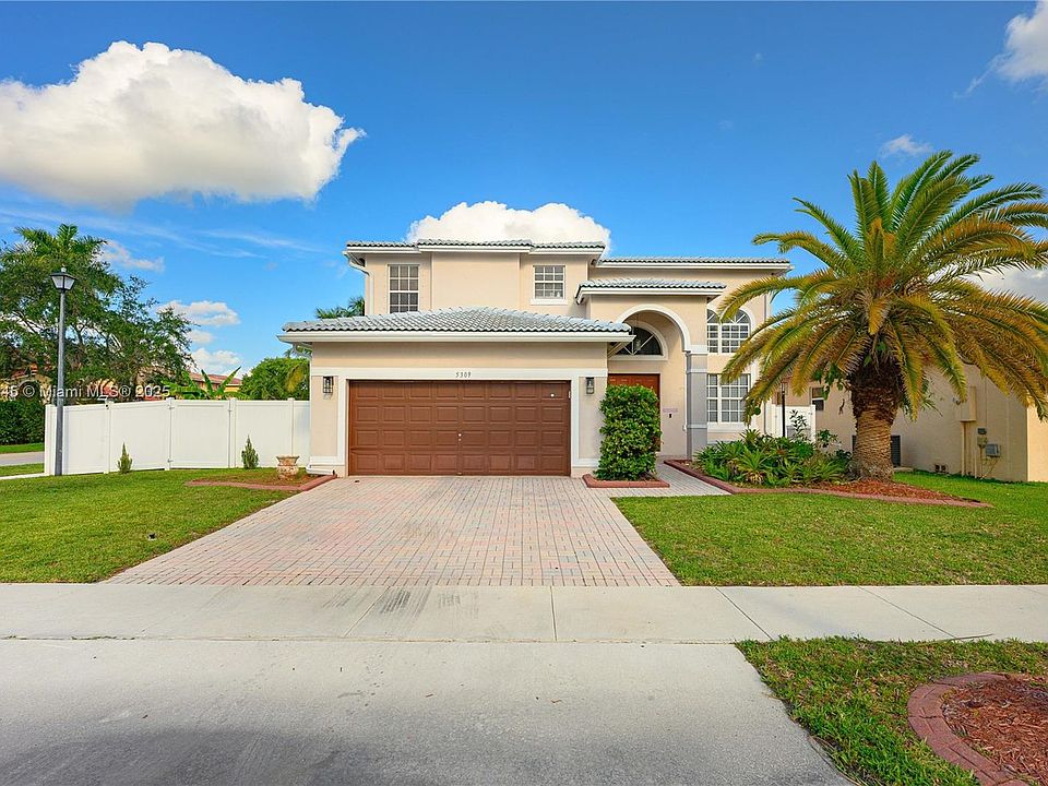This bright and airy home features generously sized 3 bedrooms, 2.5 bathrooms, and a 2-car garage, offering the perfect blend of comfort and functionality. From the moment you arrive, you'll appreciate the home's curb appeal and pride of ownership. Step inside to discover an inviting layout with plenty of natural light, ideal for both relaxing and entertaining. The main level offers spacious living and dining areas, a convenient half bath for guests, and a well-appointed kitchen with ample cabinetry and countertop space. Situated on a corner lot, the property provides extra outdoor space and privacy. Located within Vizcaya, one of Miramar's most sought-after gated communities, residents enjoy beautifully maintained grounds, secure access, MIN 650 CREDIT SCORE