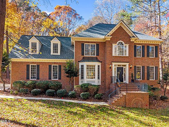 Experience Timeless Elegance in Desirable Olde Creedmoor Soak in the rich colors of autumn as you arrive at this meticulously maintained, custom-built home nestled on a serene .93-acre wooded lot. A long, private driveway leads you to this three-sided brick beauty, perfectly situated on a quiet street that embodies peace and privacy. Step inside and immediately notice the superior craftsmanship throughout — from gleaming hardwood floors and detailed moldings to custom built-ins and elegant trim work. The formal dining room impresses with a built-in china cabinet, ideal for entertaining. The formal living room (or office) offers versatility and flows seamlessly into the inviting family room, where a masonry fireplace with gas logs and custom built-ins create a warm, comfortable atmosphere. The gourmet kitchen combines functionality and style, featuring a thoughtful layout and a wall of windows in the breakfast area that fills the space with natural light and beautiful views of the surrounding landscape. A main-level guest bedroom provides convenience and privacy for visitors. Upstairs, retreat to the expansive primary suite, complete with a tray ceiling, private sitting room, and a luxurious spa-inspired bathroom featuring a vaulted ceiling, large walk-in shower, whirlpool tub, dual vanities, water closet, and spacious walk-in closet. Two additional bedrooms, a generous bonus room, and a laundry room with sink complete the upper level, easily accessible by two staircases. Storage is abundant with numerous closets and an unfinished walk-up attic offering endless possibilities. Outdoor living is equally impressive — relax on the huge screened porch with vaulted ceiling or entertain on the Brazilian IPE wood deck with a retractable awning, where you can enjoy sunshine or shade while taking in the peaceful, natural surroundings. The side-load two-car garage features a pristine epoxy-coated floor for a polished finish. This exceptional home combines classic elegance, modern comfort, and impeccable attention to detail — truly a rare find in one of the area's most sought-after neighborhoods.